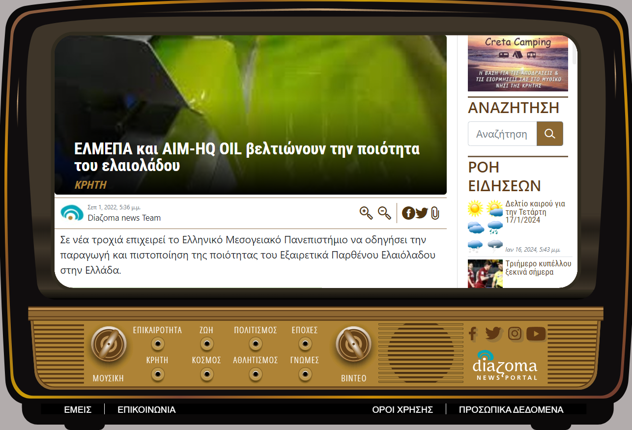 Link Δημοσιεύματος: https://diazomaportal.com/news/crete/elmepa-kai-aim-hq-oil-beltionoun-tin-poiotita-tou-elaioladou